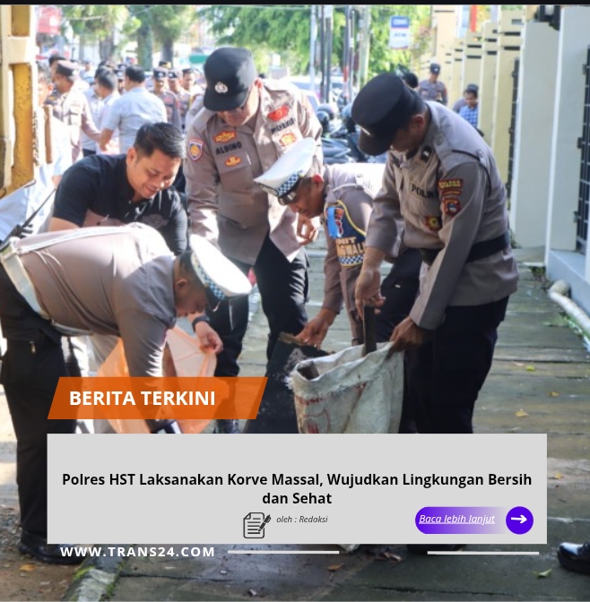 Polres Hulu Sungai Tengah Polda Kalimantan Selatan, // trans24.id// – Dalam rangka peningkatan kualitas tata kelola dan kebersihan lingkungan, Polres HST melaksanakan kegiatan korve massal di lingkungan Mako Polres HST serta sejumlah titik daerah perkotaan, sebagai bentuk tindak lanjut atas atensi Bapak Presiden Republik Indonesia, Kamis (5/2/2026).