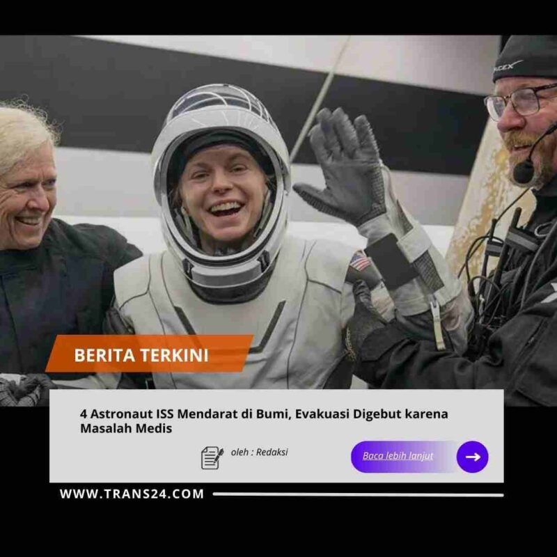 Empat Astronaut,//trans24.id//- yang dievakuasi dari Stasiun Luar Angkasa Internasional (ISS) telah mendarat di Bumi, Kamis (15/01). Masa tinggal mereka di luar angkasa dipersingkat satu bulan lantaran masalah medis yang dianggap serius.