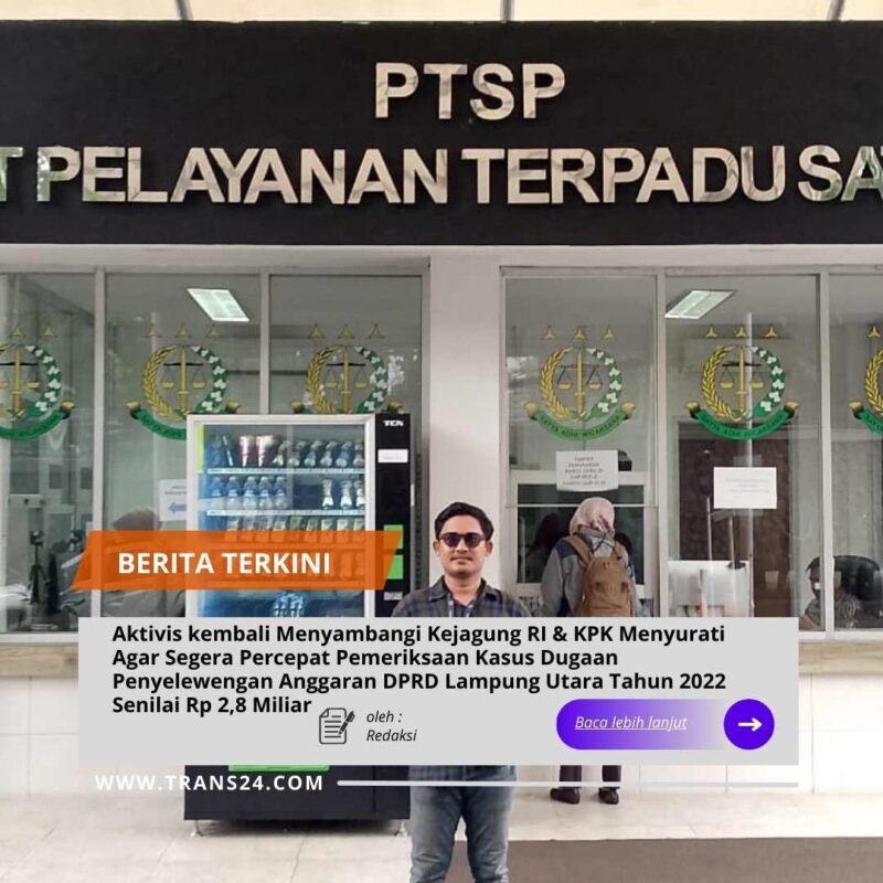 Aktivis kembali Menyambangi Kejagung RI & KPK Menyurati Agar Segera Percepat Pemeriksaan Kasus Dugaan Penyelewengan Anggaran DPRD Lampung Utara Tahun 2022 Senilai Rp 2,8 Miliar
