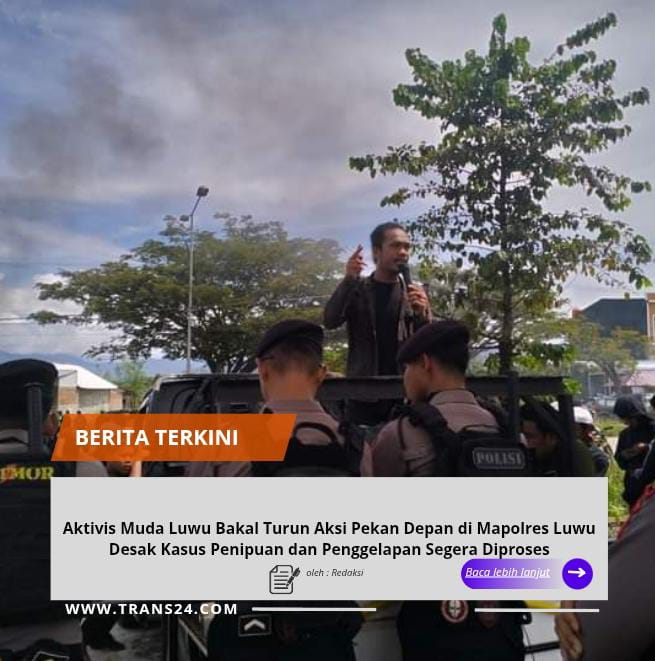 Luwu, // trans24.id //- Aktivis muda Luwu Muh Rifky sapaan akrabnya ikki gribo asal Kamanre dan sejumlah masyarakat cilalang bakal turun aksi pekan depan di Mapolres Luwu untuk mengawal kasus laporan penipuan dan penggelapan sejak 28/5/25 belum mendapatkan titik terang.