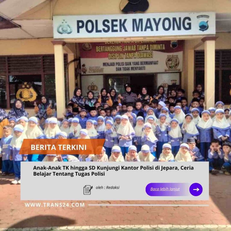 Dengan penuh keceriaan, puluhan anak-anak dari KB dan TK IT Alhusna Pelemkerep Mayong dan SDN 1 Bandungrejo datang berkunjung ke Mapolsek Mayong dan Kalinyamatan untuk mengenal lebih dekat tugas-tugas Kepolisian.