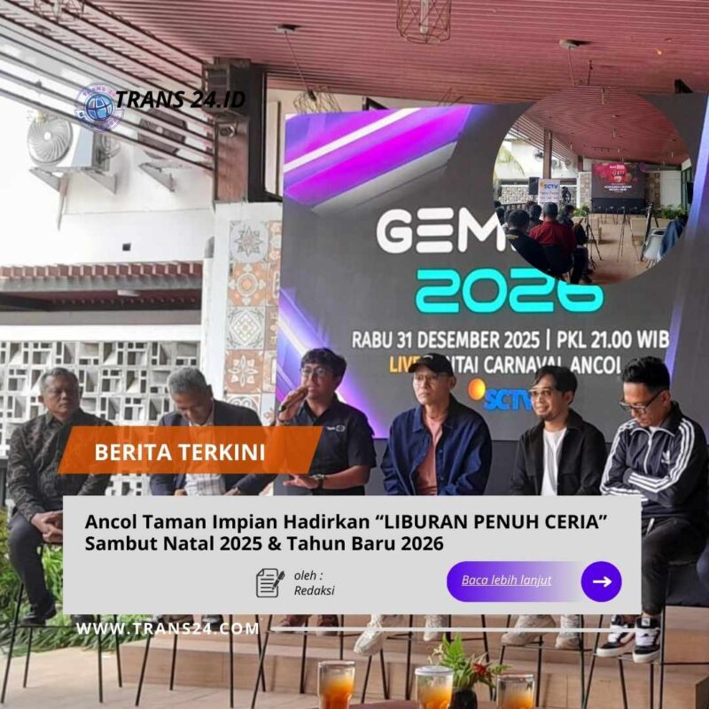 JAKARTA//trans24.id – Menyambut periode libur Natal 2025 dan Tahun Baru 2026, PT Pembangunan Jaya Ancol Tbk menghadirkan rangkaian program hiburan bertajuk “Liburan Penuh Ceria” yang berlangsung mulai 21 Desember 2025 hingga 4 Januari 2026. Beragam acara tematik, hiburan musik, seni budaya, hingga atraksi keluarga disiapkan untuk memberikan pengalaman liburan yang berkesan bagi seluruh pengunjung.