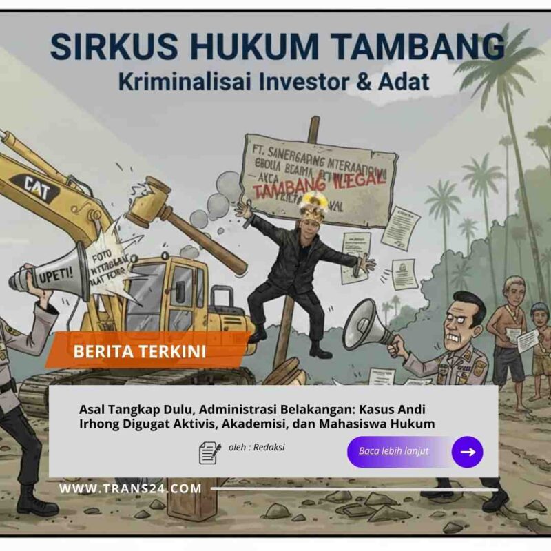 Jakarta //trans24.id//– Praktik penegakan hukum kembali menjadi sorotan tajam publik. Penangkapan dan penahanan terhadap Andi Muhammad Irhong Naeing dilakukan pada 29 Agustus 2025, sementara Surat Pemberitahuan Dimulainya Penyidikan (SPDP) justru baru diterbitkan pada 2 September 2025. Fakta ini memicu kecaman luas karena menunjukkan pola “asal tangkap dulu, administrasi belakangan” yang dinilai bertentangan dengan prinsip negara hukum.