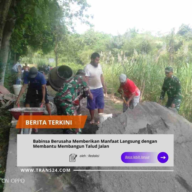 Dengan dibangunnya talud jalan ini, diharapkan akses jalan warga menjadi lebih aman dan nyaman digunakan. Kegiatan ini menjadi bukti nyata bahwa Babinsa selalu berupaya hadir dan memberikan manfaat langsung demi kemajuan serta kesejahteraan masyarakat desa binaan.