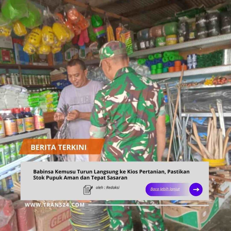 Boyolali, // trans24.id //-Dalam upaya mendukung ketahanan pangan dan menjaga ketersediaan sarana produksi pertanian, Babinsa Koramil 18/Kemusu Kodim 0724/Boyolali, Sertu Sujanto, melaksanakan pengecekan stok pupuk dan obat-obatan pertanian di salah satu toko pertanian di Desa Watugede, Kecamatan Kemusu, Kabupaten Boyolali, Minggu (18/01/2026).