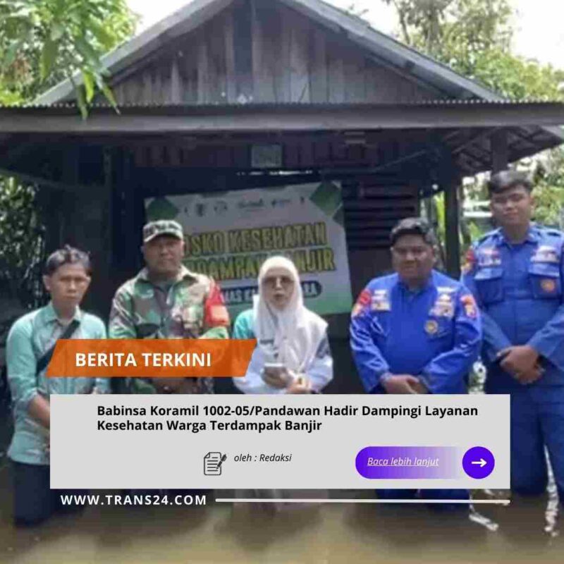 BARABAI//trans24.id – Babinsa Koramil 1002-05/Pandawan Sertu Agung Prayoga melaksanakan pendampingan pelayanan kesehatan kepada warga terdampak banjir di Desa Kayu Rabah, Kecamatan Pandawan, Kabupaten Hulu Sungai Tengah (HST), Minggu (11/01/2026).