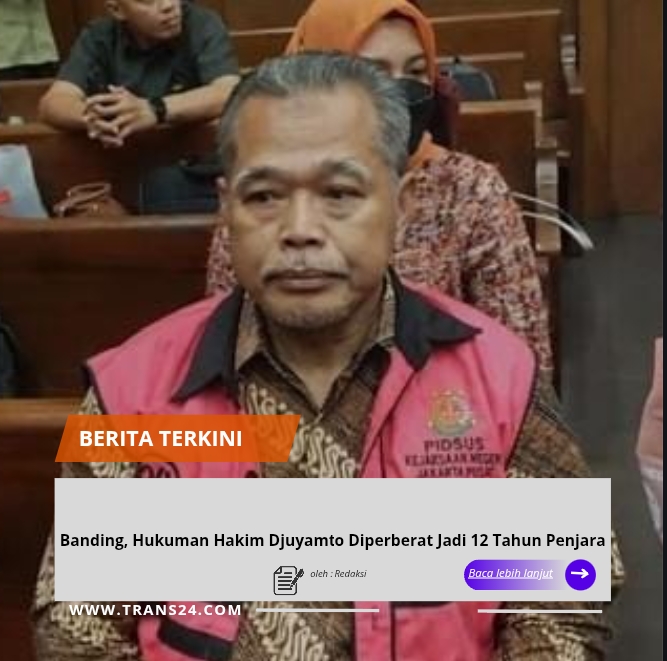 Jakarta, // trans24.id // – Pengadilan Tinggi Jakarta memperberat vonis terdakwa hakim kasus suap vonis lepas perkara minyak goreng (migor), Djuyamto. Hukuman Djuyamto diperberat dari 11 tahun menjadi 12 tahun penjara.
