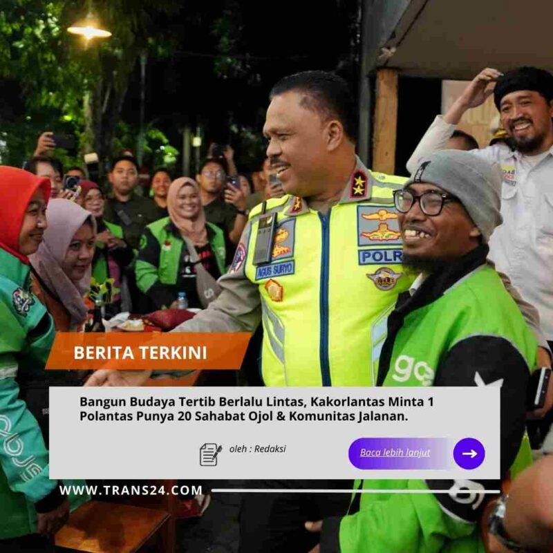 Cikampek//trans24.id – Kakorlantas Polri Irjen Pol Drs. Agus Suryonugroho S.H, M.Hum memerintahkan agar setiap anggota polantas memiliki 20 sahabat dari rekanan ojek online (ojol), tukang parkir, hingga supir angkutan.