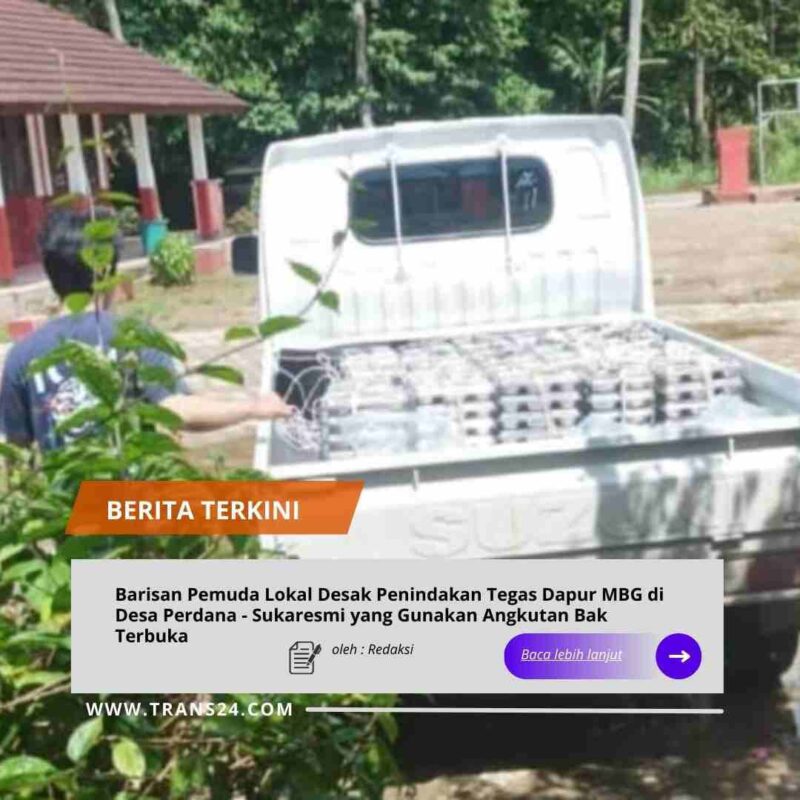 Pandeglang, // trans24.id //-Desakan penindakan tegas terhadap mitra dapur Program Makanan Bergizi Gratis (MBG) kembali menguat. Barisan Pemuda Lokal menilai dapur MBG di Desa Perdana, Kecamatan Sukaresmi, belum layak menjalankan fungsi distribusi setelah terungkap penggunaan kendaraan bak terbuka dalam pengangkutan makanan.