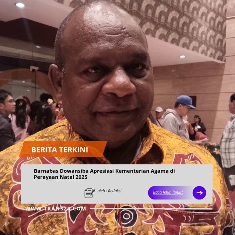 Jakarta//trans24.id – Pelaksana Tugas (Plt.) Kepala Kantor Wilayah Kementerian Agama Papua Barat, Barnabas Dowansiba, S.Th., M.Th., menghadiri Perayaan Natal Nasional 2025 yang diselenggarakan oleh Kementerian Agama Republik Indonesia di Taman Mini Indonesia Indah (TMII), Jakarta, Senin (29/12/2024). Perayaan Natal Nasional tahun ini mengusung tema “C-Light: Christmas Love in God, Harmony Together.”
