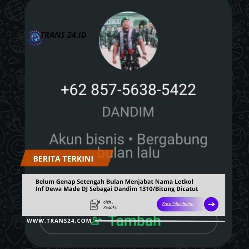 BITUNG//trans24.id – Belum genap setengah bulan menjabat sebagai Komandan Kodim 1310/Bitung, Letkol. Inf Dewa Made DJ langsung berhadapan dengan persoalan serius. Namanya dicatut oleh pihak tak bertanggung jawab.