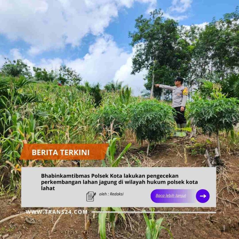 JAKARTA//trans24.id – Pada hari Rabu tanggal 14 Januari 2026 sekira pukul 10.00 WIB, personel Polsek Kota Lahat melaksanakan kegiatan pengecekan perkembangan tanaman jagung di wilayah hukum Polsek Kota Lahat sebagai bentuk dukungan terhadap program ketahanan pangan nasional.