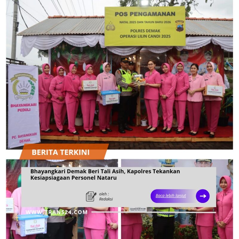 Demak//trans24.id – Kapolres Demak AKBP Ari Cahya Nugraha bersama Ketua Bhayangkari Cabang Demak Ny. Victoria Ari melakukan kunjungan ke sejumlah Pos Pelayanan dan Pos Pengamanan Natal dan Tahun Baru (Nataru) di wilayah Kabupaten Demak, Jawa Tengah, Minggu (21/12/2025).