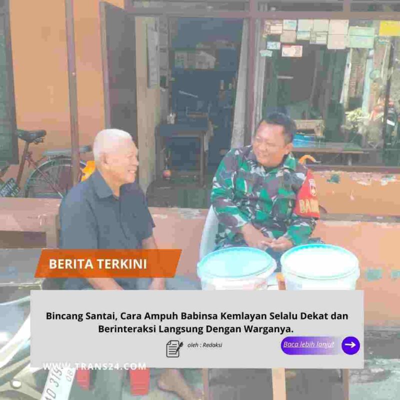 Surakarta, // trans24.id // — Kegiatan sambang Warga rutin dilakukan Babinsa Kemlayan Koramil 03/Serengan Kodim 0735/Surakarta Serka Priyanto guna mengetahui perkembangan dan permasalahan yang terjadi di wilayah binaanya. Seperti halnya yang dilakukan, saat Sambang melaksanakan Komsos bersama warga binaan dengan bapak Tukiran sebagai Ketua Rt 05 RW 04 Kelurahan Kemlayan Serengan Kota Surakarta, dalam kesempatan tersebut Babinsa memberikan himbauan agar warga dapat menjaga kenyamanan wilayah guna mewujudkan kondusifitas wilayah yang kuat (25/01/2025)