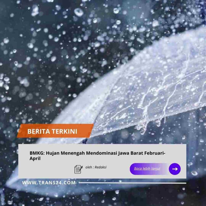Jakarta, // trans24.id //- BADAN Meteorologi, Klimatologi, dan Geofisika (BMKG) memprediksi curah hujan dengan kategori menengah akan mendominasi wilayah Jawa Barat pada Februari hingga April 2026. Kepala Stasiun Klimatologi BMKG Jawa Barat Rakhmat Prasetia mengatakan anomali suhu permukaan laut di Samudra Hindia mengindikasikan fase Indian Ocean Dipole (IOD) dalam kondisi netral.