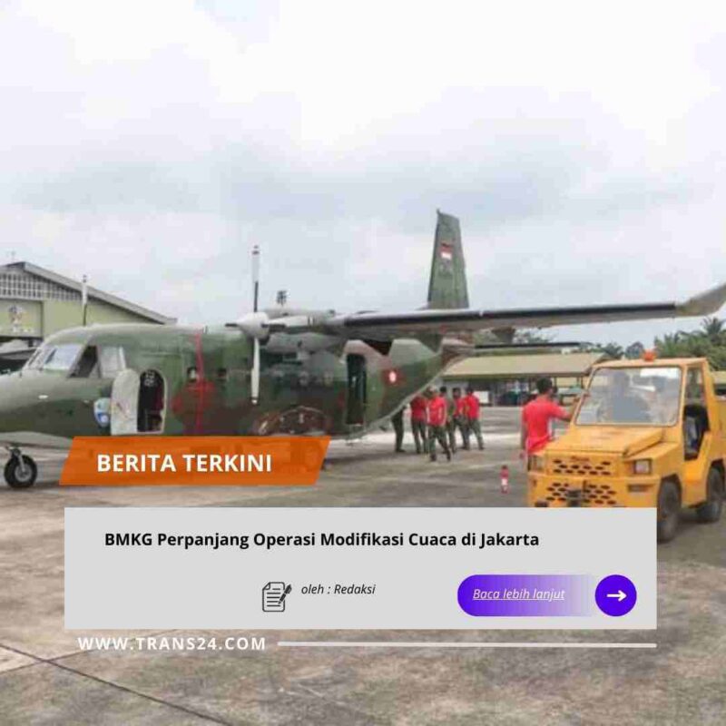 Jakarta, // trans24.id //-Operasi modifikasi cuaca (OMC) yang dilaksanakan BMKG bersama Pemprov Jakarta untuk menekan risiko bencana akibat hujan ekstrem menunjukkan hasil positif. Deputi Bidang Modifikasi Cuaca BMKG Tri Handoko Seto menyebut, pelaksanaan OMC di wilayah Jakarta dan sekitarnya berjalan cukup efektif dalam mengendalikan potensi curah hujan tinggi selama periode siaga.