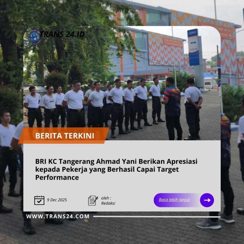 Tangerang//trans24.id – Sebagai bentuk penghargaan atas dedikasi dan kinerja unggul, BRI Kantor Cabang Tangerang Ahmad Yani memberikan apresiasi kepada para pekerja yang berhasil mencapai target performance. Pemberian apresiasi ini menjadi wujud komitmen manajemen dalam menumbuhkan motivasi, meningkatkan semangat kerja, serta mendorong budaya prestasi di lingkungan kerja.