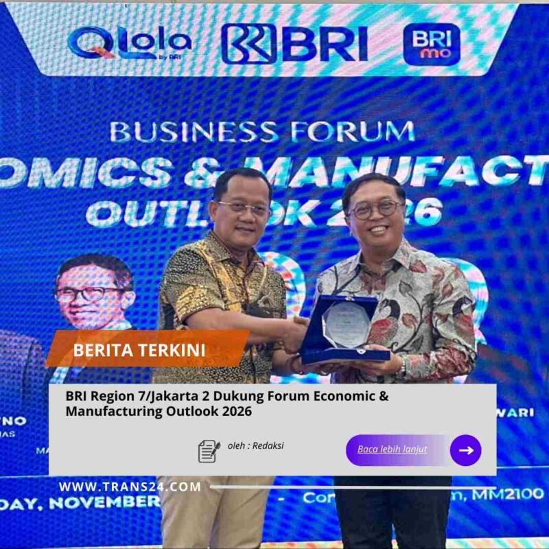 Bekasi//trans24.id – PT Bank Rakyat Indonesia (Persero) Tbk melalui BRI Region 7/Jakarta 2 menunjukkan komitmennya dalam mendukung pertumbuhan sektor industri dan manufaktur nasional dengan mendukung penyelenggaraan Forum Economic & Manufacturing Outlook 2026 yang digelar di MM2100 Office, Bekasi, pada Kamis (20/11/2025).