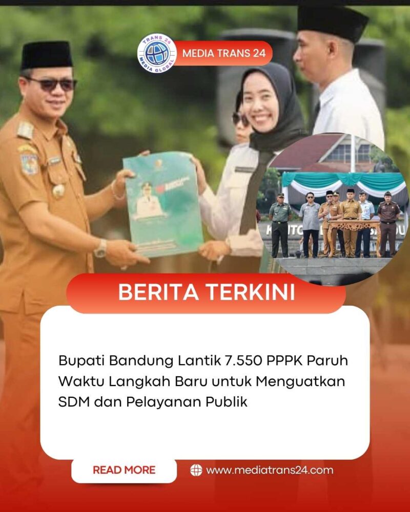 Bandung//trans24.id – 8 Desember 2025 — Udara pagi di Lapangan Upakarti, Soreang, terasa berbeda. Ribuan wajah penuh harap memenuhi area pelantikan, menyimak setiap kata yang disampaikan Bupati Bandung Dadang Supriatna. Di bawah langit yang cerah itu, sebanyak 7.550 PPPK Paruh Waktu resmi dilantik—menandai babak baru perjalanan pelayanan publik di Kabupaten Bandung.