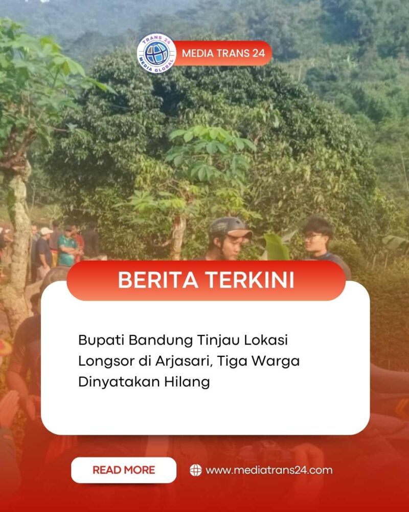 BANDUNG//trans24.id Bupati Bandung Dadang Supriatna meninjau langsung lokasi bencana longsor di Kampung Condong, Desa Wargaluyu, Kecamatan Arjasari, Kabupaten Bandung, yang terjadi pada hari Jumat (5/12/2025) sore. Longsor tersebut mengakibatkan tiga warga tertimbun material dan dua rumah rusak berat.