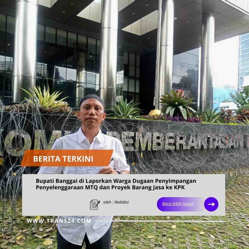 Jakarta//trans24.id — Seorang warga bernama Supriyadi dari Lembaga Sahabat KPK secara resmi melaporkan dugaan penyimpangan Bupati Banggai AT dalam penyelenggaraan Musabaqah Tilawatil Quran (MTQ) serta proyek pengadaan barang dan jasa di Kabupaten Banggai ke Komisi Pemberantasan Korupsi (KPK), Senin (5/1/2026).