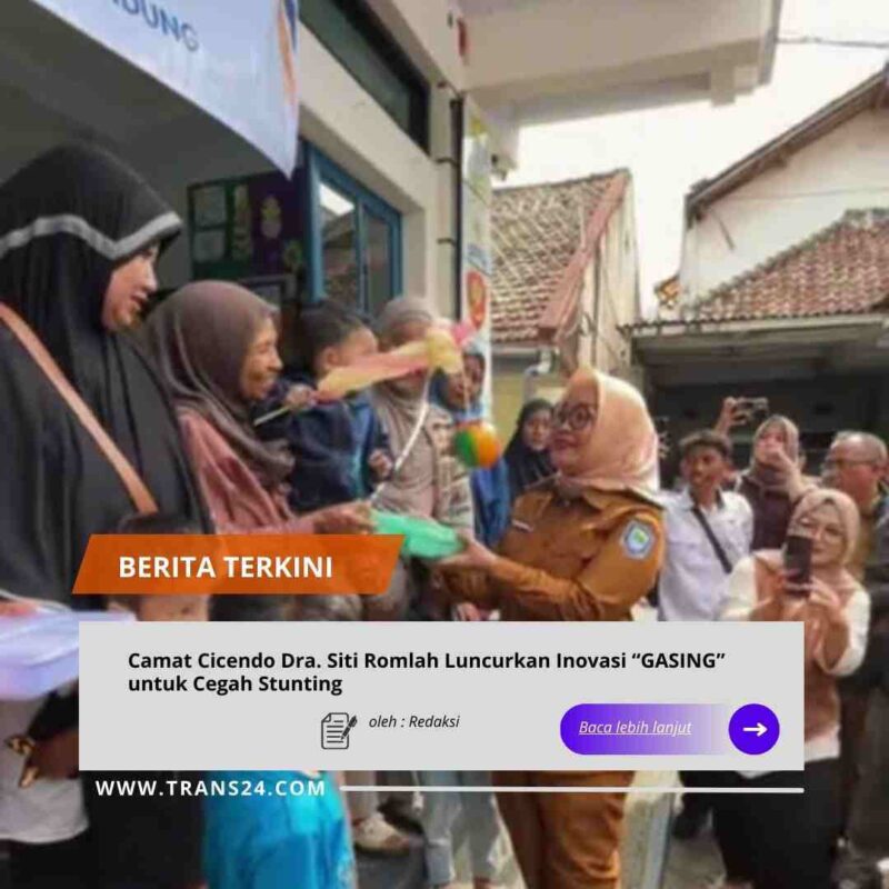 Bandung, // trans24.id //— Camat Cicendo Dra. Siti Romlah, M.Si. meluncurkan inovasi “GASING” (Keluarga Siap Cegah Stunting) yang dirangkaikan dengan penyerahan bantuan Corporate Social Responsibility (CSR) dari PT Angkasa Pura Indonesia, pada Senin, 19 Januari 2026.