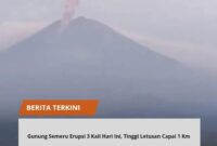 Lumajang, // trans24.id //- Gunung Semeru di perbatasan Kabupaten Lumajang dan Malang, Provinsi Jawa Timur mengalami erupsi tiga kali pagi ini. Tinggi letusan mencapai…