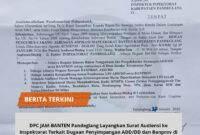 Pandeglang, // trans24.id //– Dewan Pimpinan Cabang (DPC) Jaringan Aspirasi Masyarakat Banten (JAM-BANTEN) Kabupaten Pandeglang berencana melayangkan surat audiensi kepada Inspektorat Kabupaten Pandeglang. Langkah…