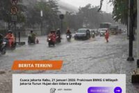 Jakarta, // Trans24.id //-Badan Meteorologi, Klimatologi, dan Geofisika (BMKG) memprakirakan seluruh wilayah DKI Jakarta akan diguyur hujan ringan pada Rabu, 20 Januari 2026. Kondisi…