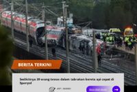 Spanyol, // trans24.id //-Sedikitnya 39 orang tewas dan puluhan lainnya luka-luka dalam tabrakan kereta api berkecepatan tinggi di bagian selatan Spanyol, menurut kepolisian setempat….
