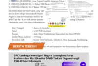 Pandeglang//trans24.id – Dewan Pimpinan Cabang (DPC) Lembaga Investigasi Negara melayangkan surat permohonan audiensi dan klarifikasi kepada Kepala Dinas Pemberdayaan Masyarakat dan Desa (DPMD) terkait…