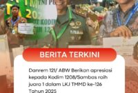 SINTANG//trans24.id – Danrem 121/Abw Brigjen TNI Purnomosidi, S.I.P., M.A.P., M.Han., memberikan apresiasi kepada Dansatgas TMMD Kodim 1208/Sambas Letkol Inf Dwiyanto Kusumo dan 2 orang…