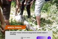 Buton//trans24.id Ular piton sepanjang 7 meter di Kabupaten Buton, Sulawesi Tenggara (Sultra) ditebas warga usai memangsa ternak. Ular itu memangsa empat kambing milik warga….