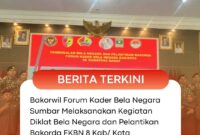 PADANG//trans24.id – Badan Kordinator Wilayah Forum Kader Bela Negara Sumatera Barat telah Melaksanakan Diklat Bela Negara dan Pelantikan 8 Badan Kordinator Daerah tingkat Kab…