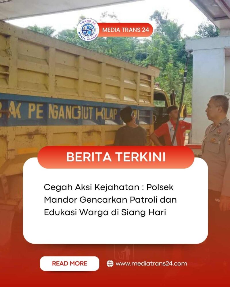 MANDOR, LANDAK//trans24.id  – Jajaran Polsek Mandor melaksanakan patroli siang di kawasan SPBU dan sejumlah titik yang kerap menjadi tempat warga berkumpul santai. Patroli ini dilakukan untuk memastikan situasi keamanan tetap kondusif serta mencegah terjadinya gangguan kamtibmas, ” Selasa (2/12/2025).