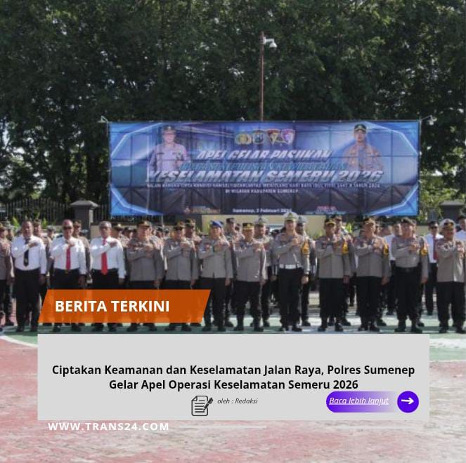 SUMENEP, // trans24.id //– Wakapolres Sumenep Kompol Masyhur Ade S.I.K.. memimpin langsung pelaksanaan Apel Gelar Pasukan Operasi Keselamatan Semeru 2026 yang digelar di Lapangan Apel Polres Sumenep, pada Senin, 2 Februari 2026.