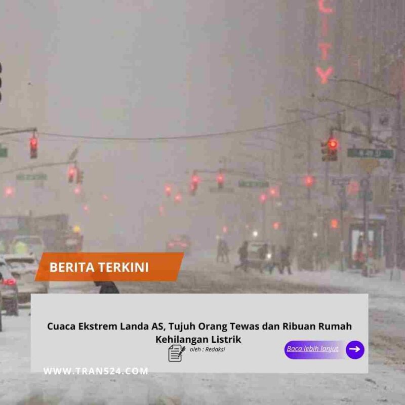 Washington, // trans24.id //– Sedikitnya tujuh orang dilaporkan tewas di Amerika Serikat dalam beberapa hari terakhir akibat suhu beku dan badai salju, menurut laporan kantor berita CNN yang dikutip Antara, Senin, 26 Januari 2026, di tengah meluasnya salju lebat dan lapisan es berbahaya di sebagian besar wilayah selatan dan timur negara tersebut.