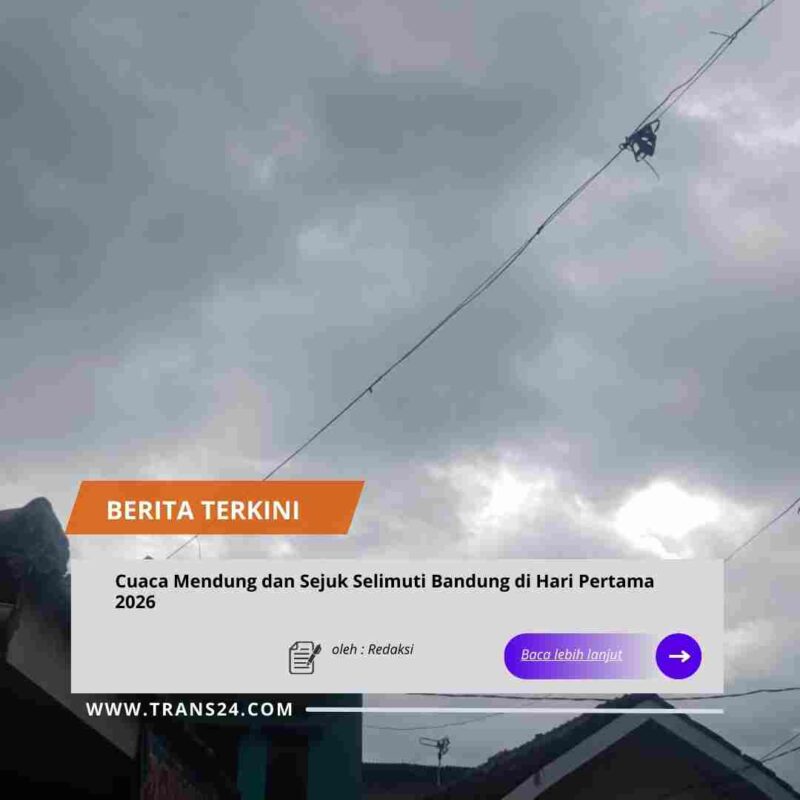 Bandung//trans24.id – 01 Januari 2026 Memasuki hari pertama tahun 2026, wilayah Bandung Raya diselimuti awan mendung dengan suasana udara yang terasa sejuk. Kondisi ini mewarnai aktivitas masyarakat di awal tahun baru, baik yang masih merayakan momen pergantian tahun maupun yang mulai kembali beraktivitas.