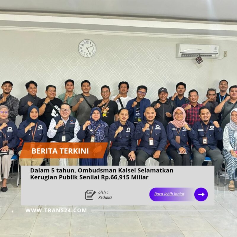 Banjarmasin//trans24.id – Perwakilan Ombudsman RI Provinsi Kalimantan Selatan (Ombudsman Kalsel) sebagai pengawas penyelenggaraan pelayanan publik mencatat nilai valuasi sebesar Rp.66.915.867.135. Angka ini merupakan penyelamatan Ombudsman Kalsel.