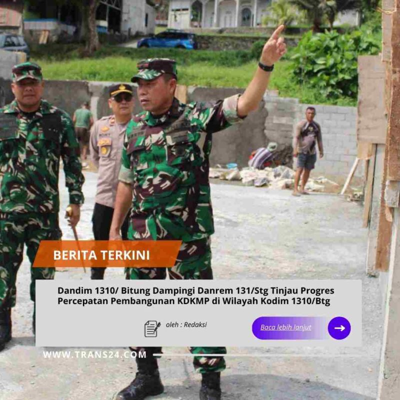 BITUNG//trans24.id – Komandan Korem (Danrem) 131/Stg Brigjen TNI Martin Susilo Martopo Turnip, S.H., M.H., didampingi Komandan Kodim (Dandim) 1310/Btg Letkol Inf Dewa Made DJ, meninjau progres pembangunan Koperasi Desa Kelurahan Merah Putih (KDKMP) di Tiga lokasi berbeda di Wilayah Kodim 1310/Btg, pada Rabu (31/12/2025).