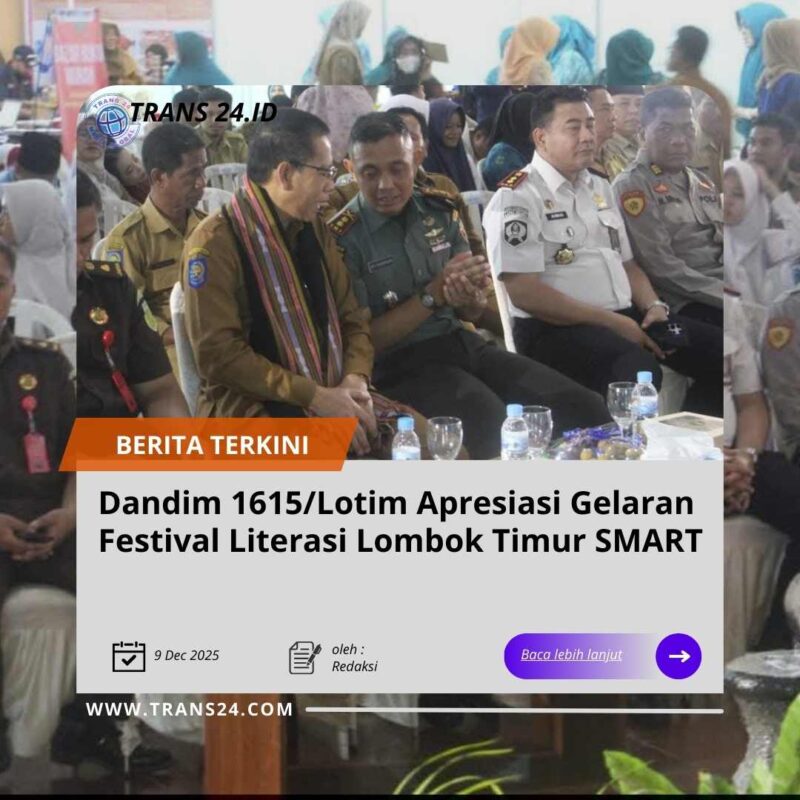 LOMBOK TIMUR, NTB//trans24.id – Komandan Kodim (Dandim) 1516/Lombok Timur Letnan Kolonel Eky Anderson turut menghadiri dan memberikan dukungan penuh pada gelaran akbar Festival Literasi Lombok Timur SMART yang diselenggarakan di Aula Gedung Wanita Selong. Selasa, ( 09/12/2025 ).