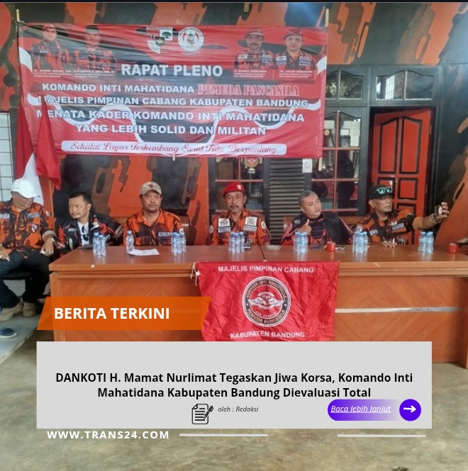 BANDUNG I, //trans24.id// – Rapat Pleno Komando Inti Mahatidana Kabupaten Bandung digelar pada Minggu, 8 Februari 2026, pukul 11.00 WIB, bertempat di Mako Komando Inti Mahatidana, Jalan Raya Sapan–Majalaya, Desa Bojong Emas, Kecamatan Solokanjeruk, Kabupaten Bandung. Kegiatan ini dihadiri jajaran pengurus dan anggota Komando Inti Mahatidana Kabupaten Bandung.