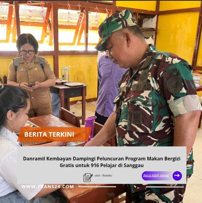 SANGGAU, // Trans24.id //– Danramil 1204-04/Kembayan, Lettu Inf Hendrikus, menghadiri sekaligus mendampingi pelaksanaan launching Program Makan Bergizi Gratis bagi pelajar di wilayah Kecamatan Kembayan, Kabupaten Sanggau, pada Senin (02/02/2026).