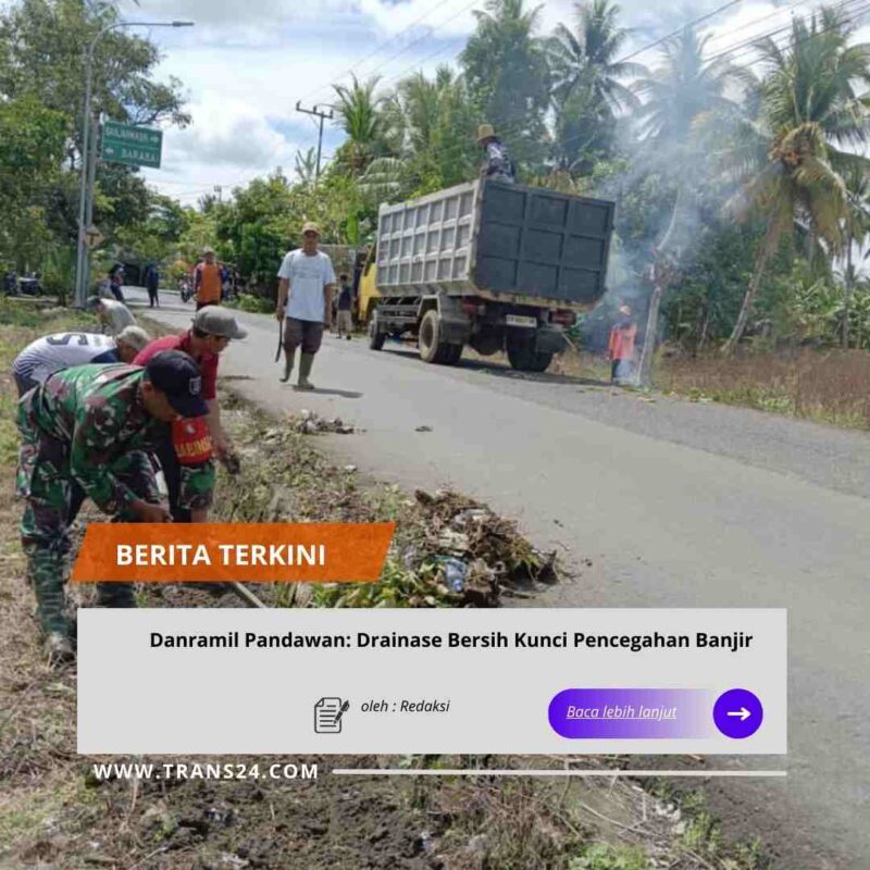BARABAI//trans24.id – Sebagai upaya mengantisipasi dampak cuaca ekstrem dan potensi terjadinya banjir, Babinsa Koramil 1002-05/Pandawan Sertu Sugianto bersama masyarakat melaksanakan kegiatan pembersihan drainase di Desa Banua Asam, Kecamatan Pandawan, Kabupaten Hulu Sungai Tengah, Kamis (15/01/2026).