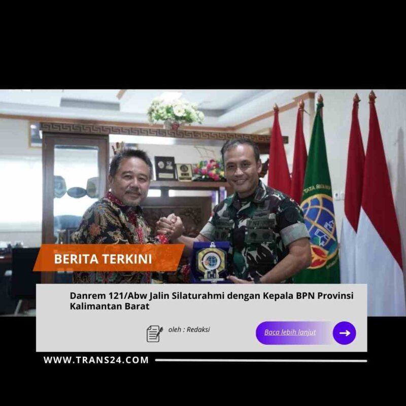 Kalimantan Barat//trans24.id Komandan Korem 121/Alambhana Wanawwai, Brigjen TNI Purnomosidi, S.I.P., M.A.P., M.Han., melaksanakan silaturahmi ke Kantor Wilayah (Kanwil) Badan Pertanahan Nasional (BPN) Provinsi Kalimantan Barat, Jumat (9Januari 2026).