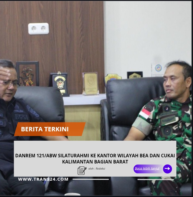 PONTIANAK, //trans24.id//— Komandan Korem 121/Alambhana Wanawai (Abw), Brigjen TNI Purnomosidi, S.I.P., M.A.P., M.Han., melaksanakan silaturahmi ke Kantor Wilayah Direktorat Jenderal Bea dan Cukai (DJBC) Kalimantan Bagian Barat, dan diterima langsung oleh Muhamad Lukman selaku Kepala Kantor Wilayah DJBC Kalimantan Bagian Barat, Jumat (30/01/2026).