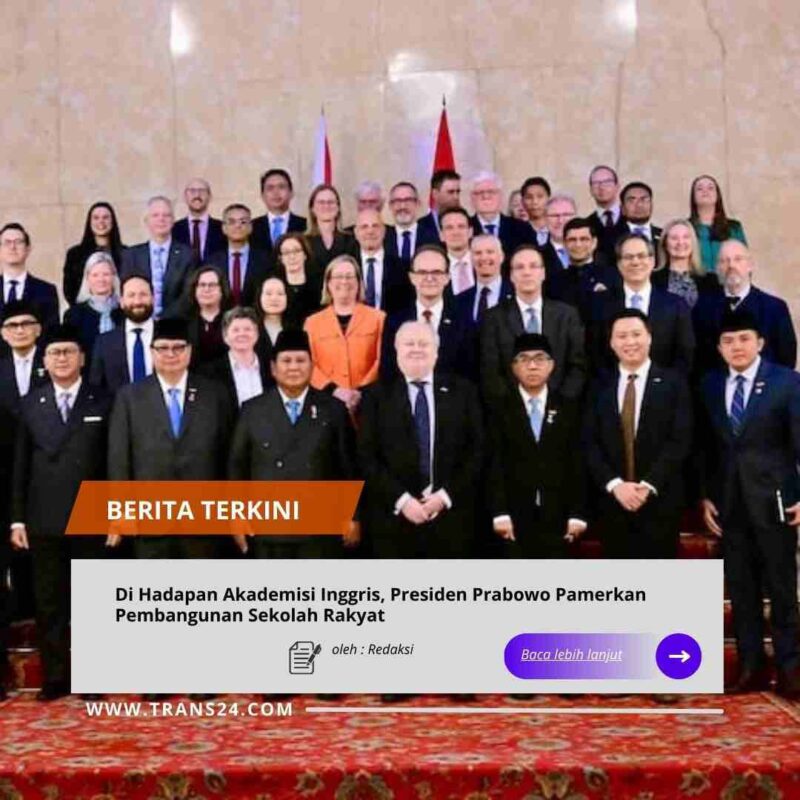 Jakarta, // trans24.id // – Presiden Prabowo Subianto menegaskan pendidikan merupakan kunci utama bagi keberhasilan suatu bangsa. Hal tersebut disampaikan Presiden saat berbicara dalam forum UK-Indonesia Education.