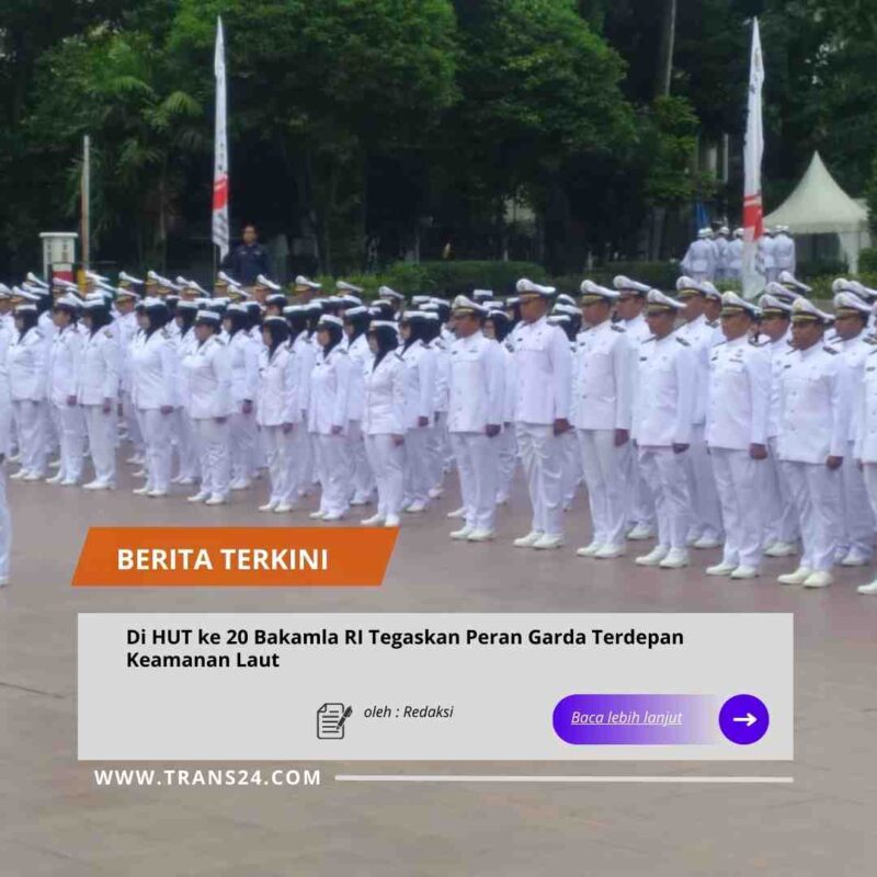 JAKARTA PUSAT//trans24.id – Bakamla RI memperingati Hari Ulang Tahun (HUT) ke-20 dengan menggelar upacara resmi yang dipimpin Kepala Bakamla RI Laksdya TNI Dr. Irvansyah, S.H., M.Tr.,Opsla. Momentum dua dekade pengabdian ini menjadi penegasan Bakamla RI sebagai garda terdepan keamanan laut Republik Indonesia. Kegiatan di laksanakan di lapangan Proklamasi, Menteng, Jakarta Pusat, Rabu (7/1/26).
