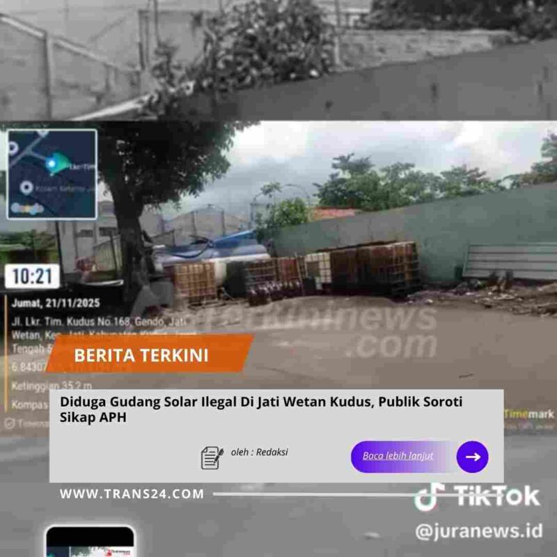 Kudus//trans24.id — 26/12/2025 – Dugaan keberadaan gudang penimbunan BBM jenis solar bersubsidi secara ilegal di wilayah Desa Jati Wetan, Kecamatan Jati, Kabupaten Kudus, kembali menjadi sorotan publik.