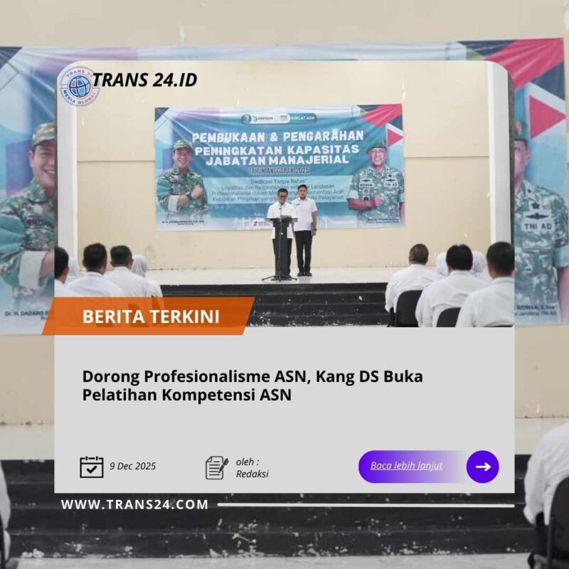 BANDUNG//trans24.id — Bupati Bandung, Dadang Supriatna membuka Kegiatan Pengembangan Kompetensi bagi ASN Jabatan Manajerial di Gedung Dewi Sartika, Soreang, Rabu (10/12/2025). Kegiatan yang mengusung tema “Dedikasi Tanpa Batas, Loyalitas, dan Responsifitas sebagai Landasan Profesionalisme dalam Mendukung Implementasi Arah Kebijakan Pimpinan yang Berorientasi pada Pelayanan” ini menjadi langkah strategis untuk memperkuat kapasitas kepemimpinan ASN di tengah tuntutan birokrasi modern yang semakin kompleks.